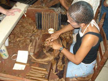 Sr. Dominguez testing a newly rolled cigar.