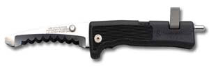 The first knife is the Smith & Wesson SW911 First Response knife (see full review in the February 2003 ÆGIS), made by Taylor Cutlery. Although not suited for daily use, it is perfect for cutting seatbelts and other things during an emergency. It is an incredibly sturdy knife, and can be used as a light pry bar. The newest production run now includes a clip. This obviously allows you to clip the SW911 to your clothing. It also allows you to fasten it to a lanyard, which can be important if you are working in a place (such as in the water) where dropping it would be a problem. If you need a rescue knife, we believe this is the best choice currently available.