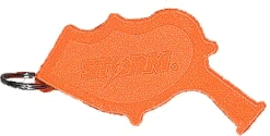 ITW Nexus makes the most compact of the whistles we examined. Their Rescue Whistle measures 22 mm wide by 73 mm long, and is quite slim. This whistle meets or exceeds SOLAS 74 / 83 Chapter III, Regulation 32.1.6. It can either be used with a lanyard or attached via an integral belt clip.
