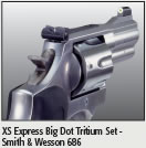 Our choice was the XS Sight Systems Big Dot Tritium Express Set, shown here on a Smith & Wesson 686. The big dot is really big, and easily picked up when it is light enough to see. As it gets darker, the tritium capsule in the center of the sight becomes visible enough to be seen for that important first shot. What about the remaining shots? There will be so much fire flying from the barrels of the guns being fired that this will not be a significant issue.