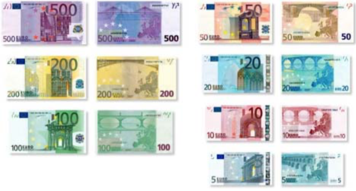 Various anti-forgery features have been incorporated into the euro banknotes. They will help you to recognize a genuine banknote at a glance.